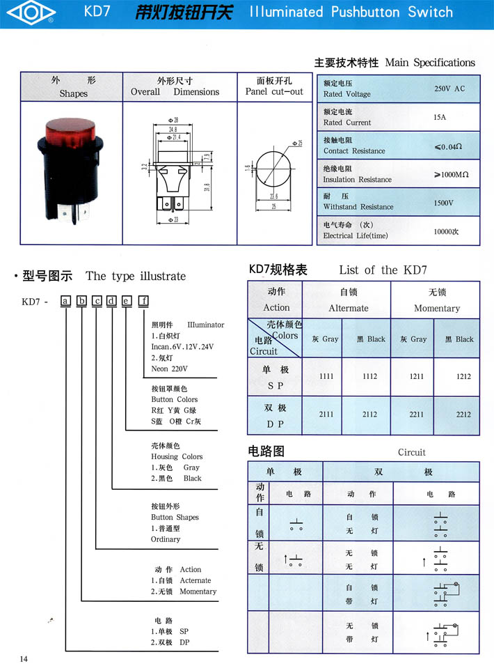 產(chǎn)品型號:KD7系列帶燈按鈕開關